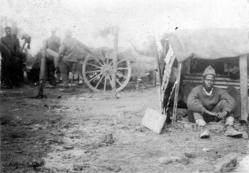 113. Пленные солдаты (африканцы) французского колониального корпуса в лагере к югу от Дижона.