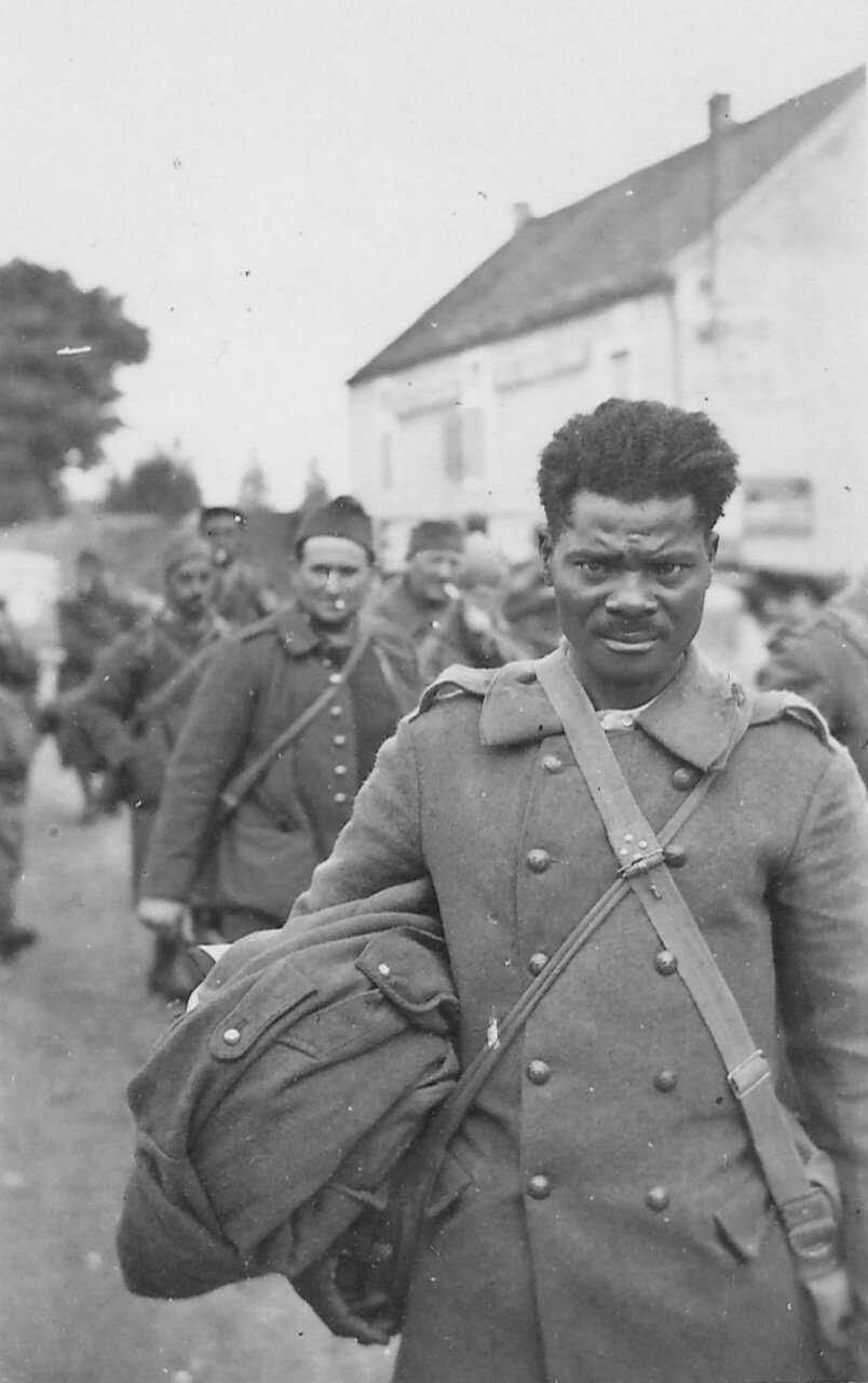 50. Неизвестный военнопленный солдат одного из французских североафриканских (марокканских) полков спаги на марше в составе колонны пленных.