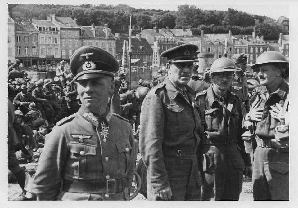 121. Генерал-майор Эрвин Роммель, в то время командир 7-й танковой дивизии вермахта, с пленными английскими офицерами. Шербур, Франция, июнь 1940 г.