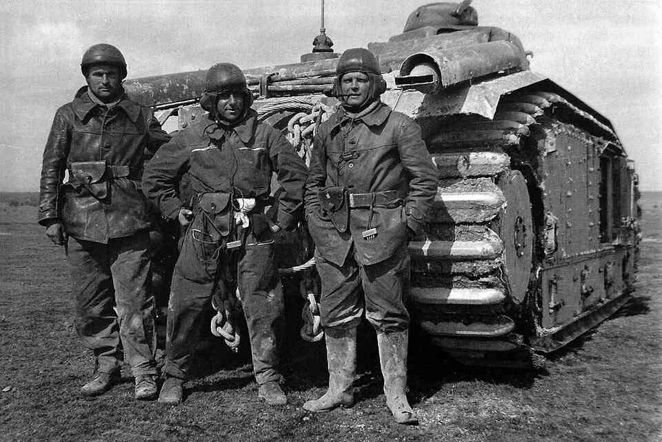 103. Экипаж французского танка Char B1 №350 «Fleurie» перед своей машиной.