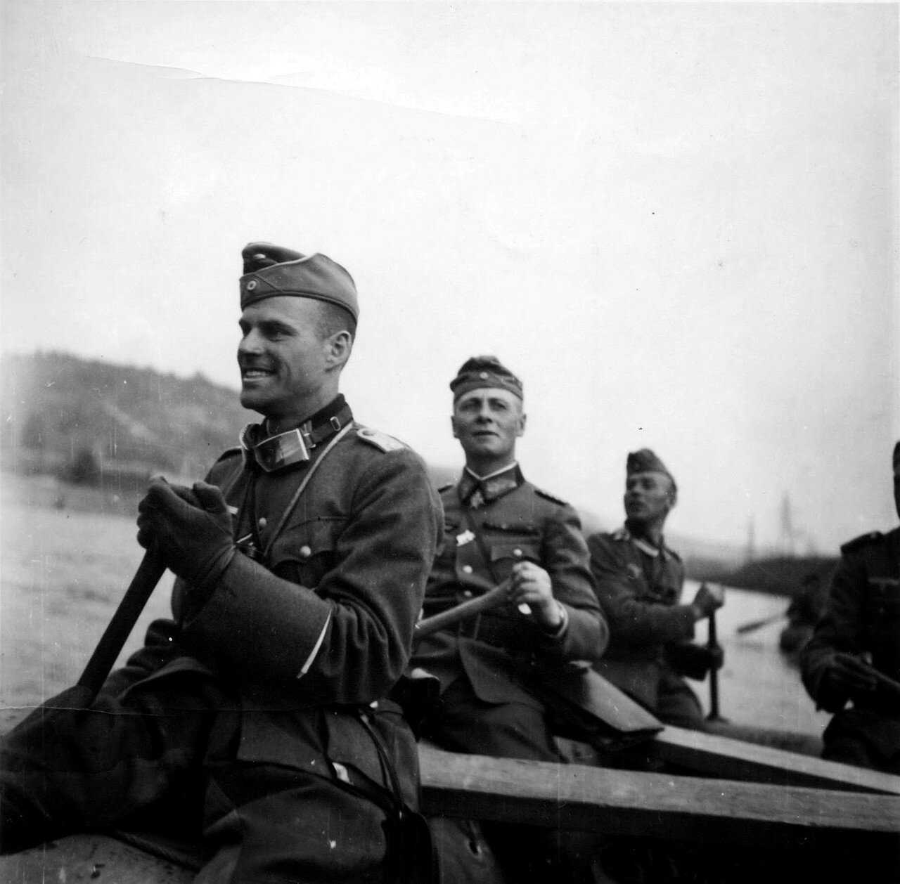 31. Командующий 7-й танковой дивизией вермахта генерал-майор Эрвин Роммель с офицерами штаба переправляются через реку на лодке.