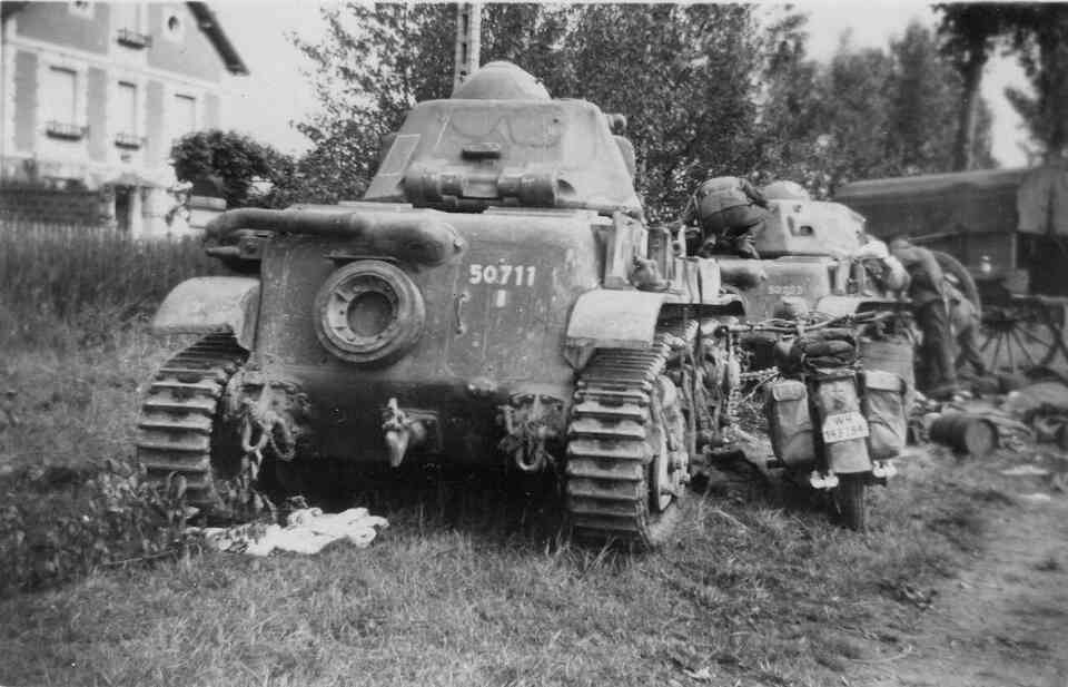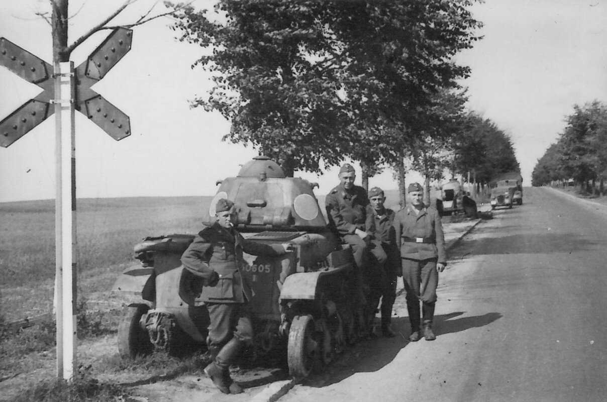 2. Немецкие солдаты на броне брошенного французского легкого танка Hotchkiss H35.