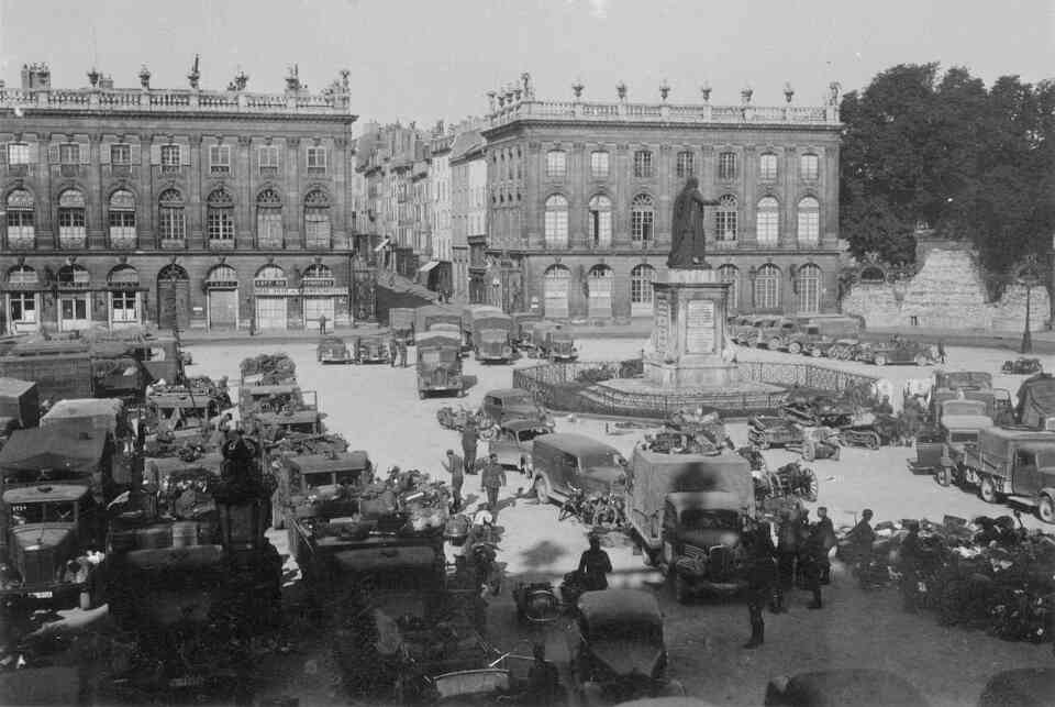 91. Немецкие автомобили на площади Станислава во французском городе Нанси. В центре площади — памятник польскому королю Станиславу Лещинскому.