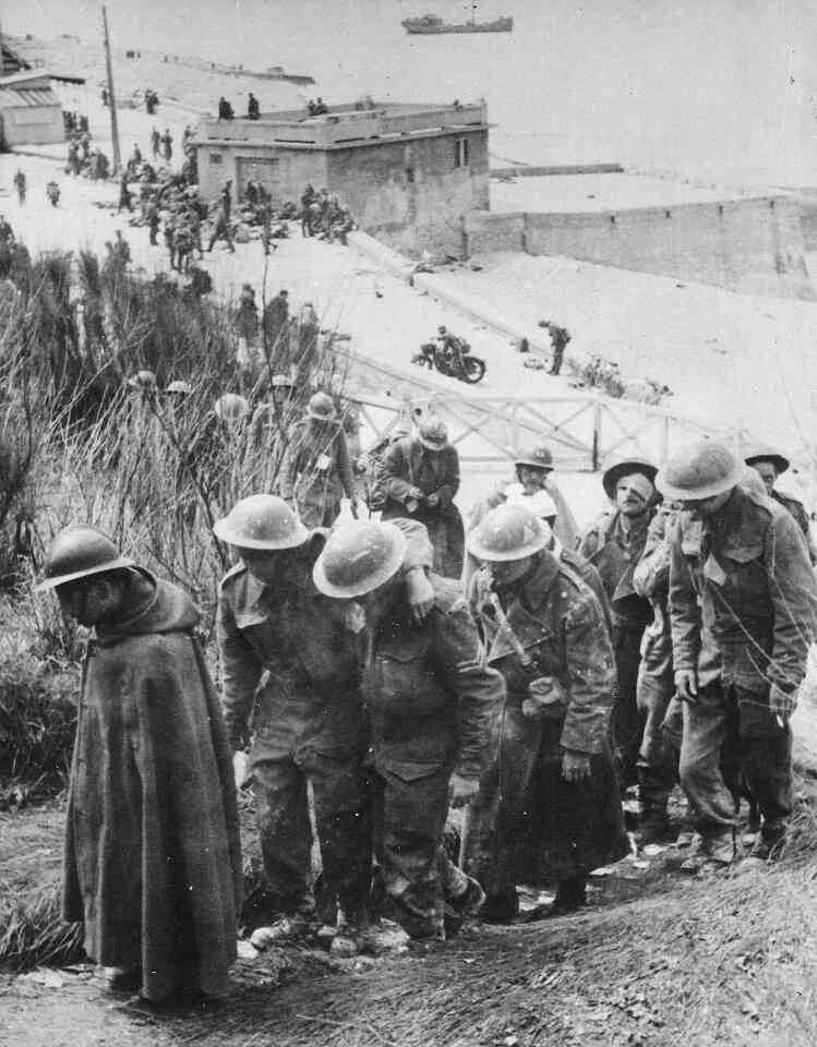94. Английские солдаты, взятые в плен немцами в Дюнкерке, на площади города.