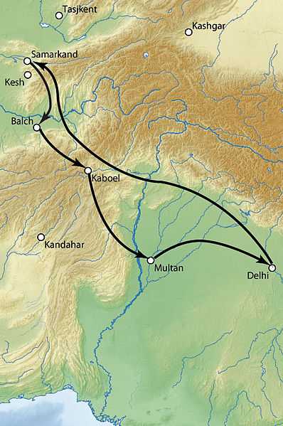 Известия об этом, дошедшие до Тимура, звучали очень заманчиво; и так он решил, прежде чем отправиться на запад, предпринять хищнический набег в больших размерах через Инд. Решение было приведено в исполнение в 800 (1398) г. Что здесь в самом деле вопрос шел не о приобретении страны на продолжительное время, видно из самого способа его выполнения. Большая часть похода совпала с жарким временем года, что естественно заставляло татарскую армию держаться как можно дальше к северу. Мультан, который уже в предыдущем году осаждался Пиром Мухаммедом, внуком Тимура, и самый Дели были самыми южными пунктами, до которых они достигли; но округи между обоими этими городами и Гималаями тем более подверглись всем ужасам войны.