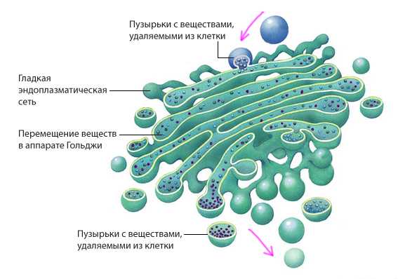 В комплексе Гольджи также накапливаются вещества, которые клетка синтезирует для нужд всего организма и которые выводятся из клетки наружу.