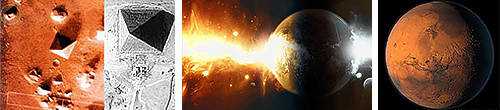 «В 1972 году американская станция «Маринер» достигла Марса. Облетев Красную планету, станция сделала 3000 фотоснимков. Из них 500 было опубликовано в широкой печати. На одном из снимков мир увидели полуразрушенную пирамиду, высотою в полтора километра и сфинкса с человеческим лицом. Остальные 2500 снимков НАСА засекретило, ссылаясь на то, что их надо, якобы, расшифровывать. Прошло более десяти лет, и в широкой печати были опубликованы фотографии еще одного сфинкса и пирамиды. На новых снимках уже можно было четко различить сфинкса, пирамиду и остатки огромной стены прямоугольного здания.»