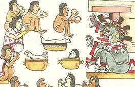 Также каждый день змееподобые боги принимали кровь животных. Люди тоже должны были предложить свою кровь. Не многие избегали этой болезненной обязанности, даже грудным детям протыкали уши для этих целей. Обычно для кровопускания использовали шип ма-гуея.