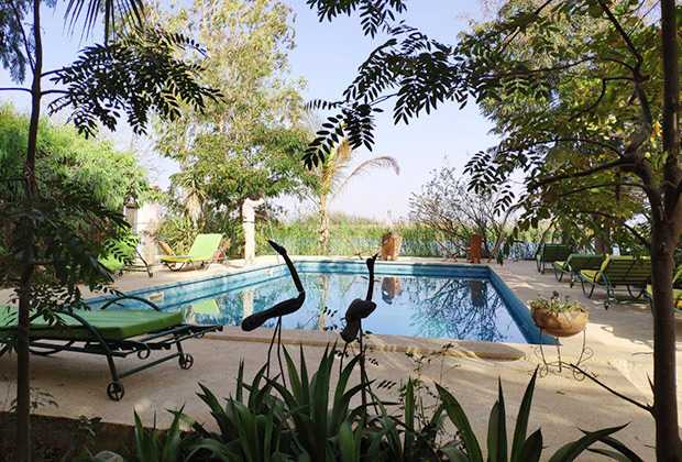 Мы уперлись в огромный забор, ворота оказались открытыми. На КПП охранника мы не нашли и прошли вглубь территории. Территория отеля была похожа на райский сад: аккуратный бассейн, море цветов, пальмы с кокосами, уютные домики, а дополнительный колорит всему этому придавала быстрая речка, которая тянулась вдоль всего отеля. Через несколько минут нас нашел охранник, он не говорил по-английски и поэтому позвал хозяина.