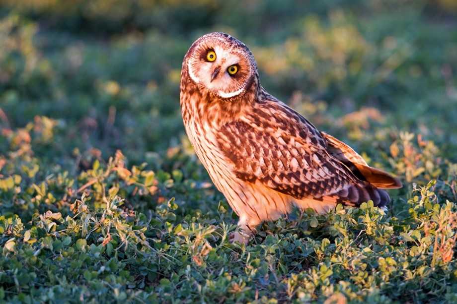 21.Болотная сова обитает в Северной Европе Азии, Америке, Карибском бассейне, Гавайях (где она — единственный филин) и островах Галапагос. Большая часть популяции обитает в России, Скандинавии и Соединенном Королевстве. Вид состоит из девяти подвидов. Характерная особенность болотной совы – способ гнездования. Дом птица строит на земле. Жилище представляет собой вытоптанный участок земли среди высокотравья или густого кустарника.