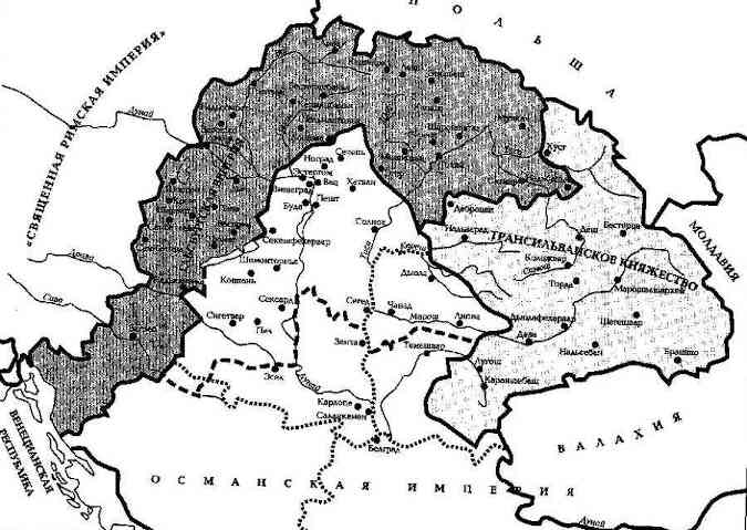 После завоевания Сулейманом Великолепным Венгрии, государство венгров, чье средневековое королевство было неотъемлемой частью Европы, на несколько столетий вообще исчезло с карты мира, превратившись в несколько обрубков: одна часть Венгрии стала провинцией Османской империей, другая обрубленная часть вошла в состав государства Габсбургов, была и третья часть — Трансильвания с сильным румынским элементом, но управляемая венгерскими феодалами и платящая дань Османской империи. Венграм удалось вернуться на карту мира лишь в XIX веке, когда империя Габсбургов, постепенно вернув земли старого Венгерского королевства, стала т.н. двойной монархией Австро-Венгрией. Но только с развалом Австро-Венгрии, в начале XX века, Венгрия смогла стать вновь независимой.