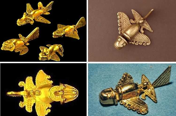 Из всего этого собрания украшений особо выделяются своей необычной формой небольшие, около 2-х дюймов в длину, фигурки, которые представляют собой стилизованные изображения животных, птиц, насекомых, рыб. Однако, опознать в этих фигурках какого-то реального представителя фауны пока никому не удалось. Зато в них, при некоторой доле воображения, можно увидеть... реактивный самолет.