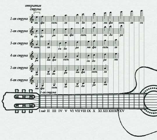Способ выучивания нот на гитаре для желающих ориентироваться в аккордах