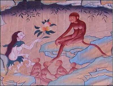 Согласно местной легенде о сотворении мира, тибетский народ своим происхождением обязан союзу обезьяны и демоницы.